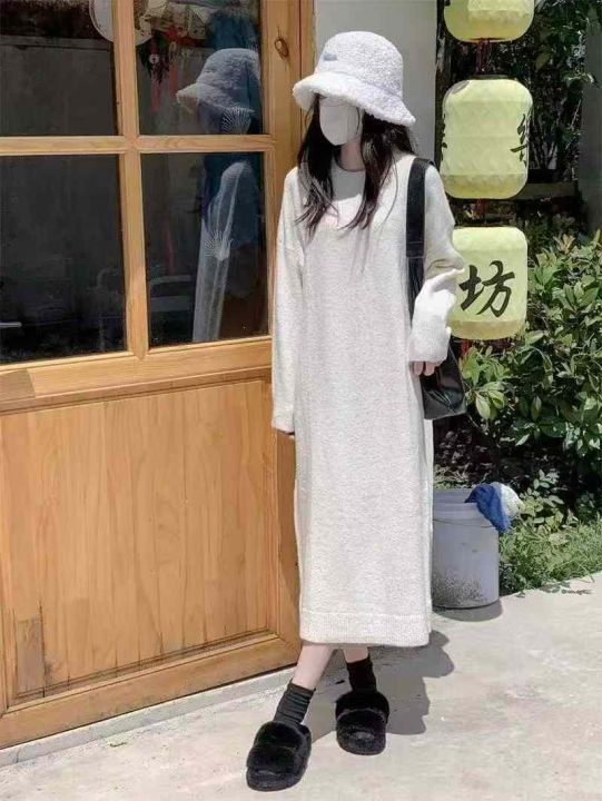 秋冬新款法式复古宽松简约中长款毛衣连衣裙,独立包装,均码面料软糯厚实,...