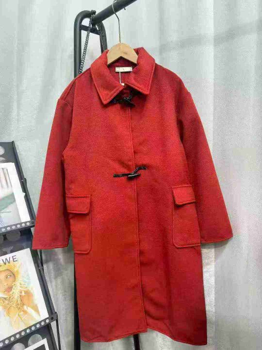 237件秋冬牛角扣双面呢子大衣女中长款小个子复古红色毛呢外套,单款单色,...