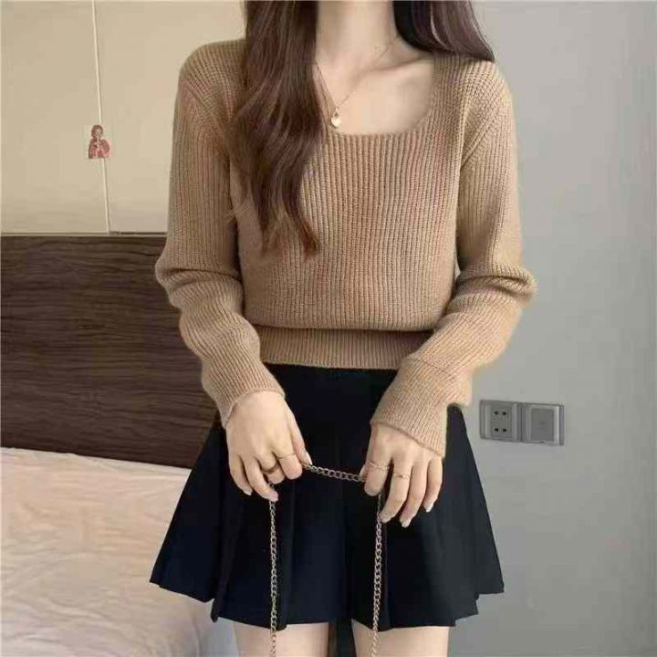 秋季新品方领高腰净版简约基础百搭套头毛衣, 独立包装,均码面料软糯舒适...