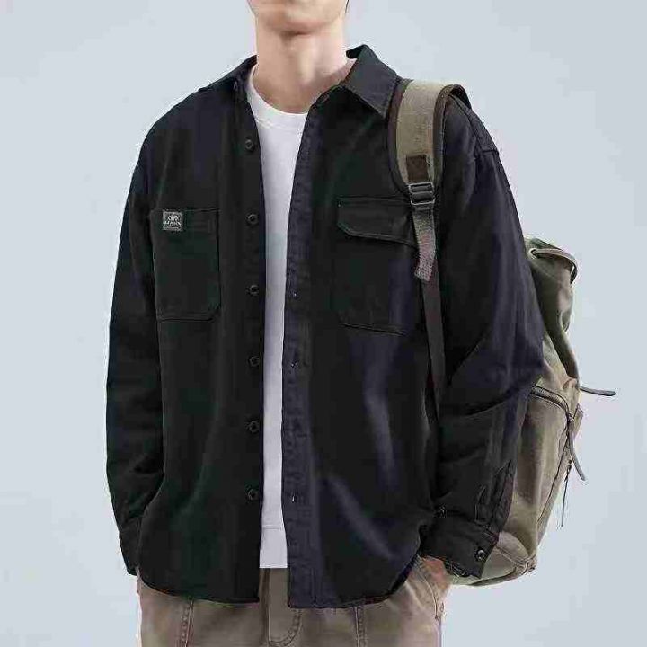 清8.8分货➕1港风男士长袖水洗衬衫春秋季新款宽松休闲帅气衬衣外套男,码数...