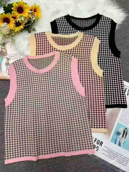 秋季新款韩版复古撞色提花宽松叠穿针织毛衣马甲背心,独立包装,均码宽松版...
