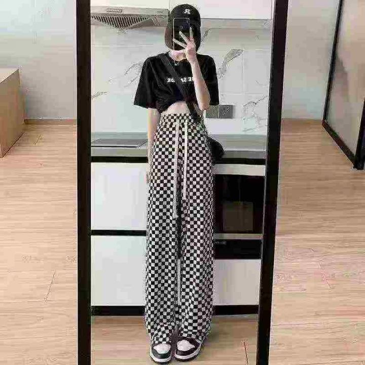 冰丝棋盘格裤子女夏季薄款高腰显瘦垂感休闲阔腿裤 有弹力 独立包装 码数1-5...