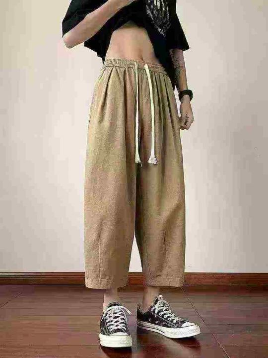 8.9清240件洗水棉男士九分工装复古宽松直筒阔腿潮牌春秋休闲九分裤子!码数...