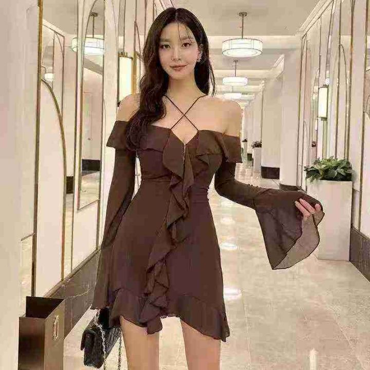 纯欲辣妹挂脖吊带裙137件8.8,面料柔软舒适,高弹力,图二38件,喇叭袖,码...
