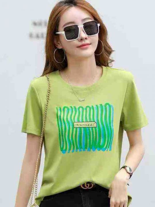 2025夏季新款时尚圆领印花宽松百搭休闲女装短袖纯棉T恤上衣,整款3个颜色,...