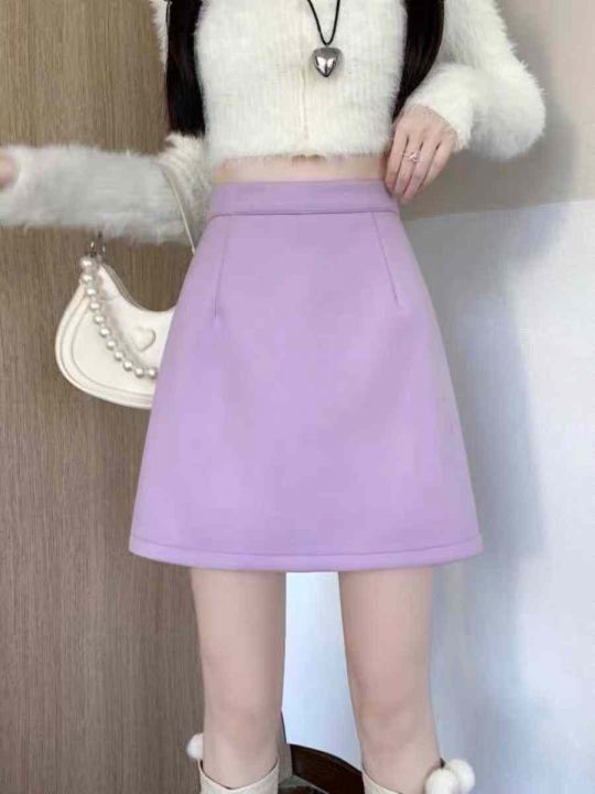 ☕️香芋紫水貂毛绒包臀短裙女冬季修身显瘦紧身半身裙80件全清9.9元,均码...