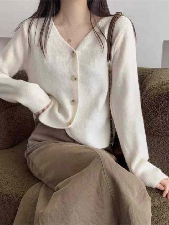 ☕️小香风V领水貂绒毛衣短款针织开衫新款毛衣外套长袖上衣120件全清13.8元...