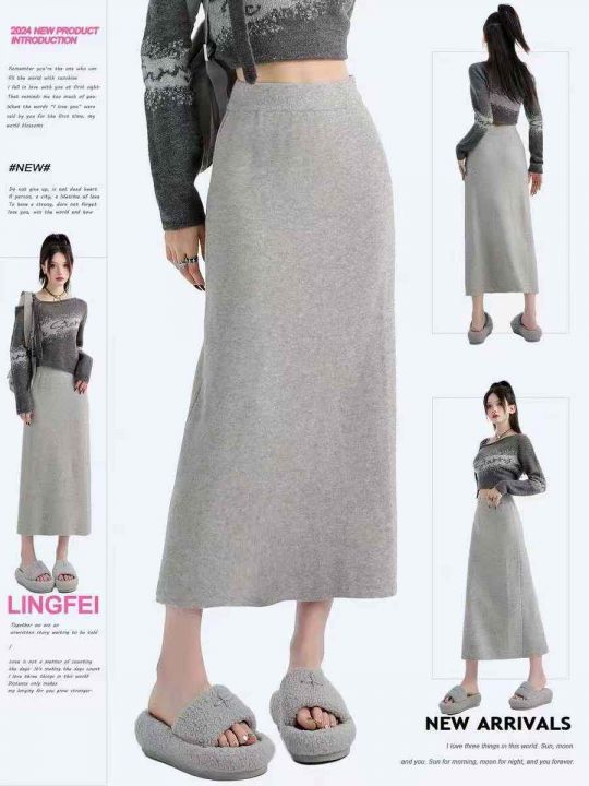 ☕️灰色高腰包臀针织半身裙女秋冬新款直筒显瘦中长款裙子70件全清12.8元,...