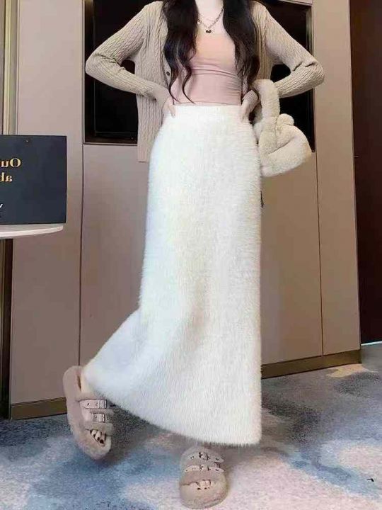 ☕️水貂绒半身裙女春秋季毛线针织高腰显瘦a字遮胯一步包臀长裙70件全清12....