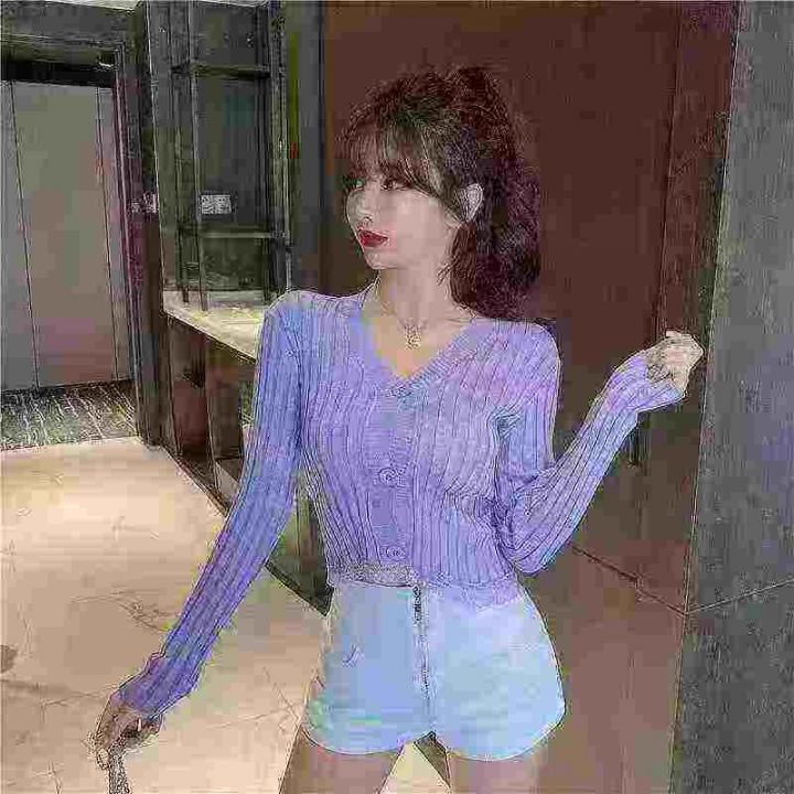 v领针织外穿内搭设计感小众长袖针织毛衣打底衫,独立包装,六个颜色,均码...