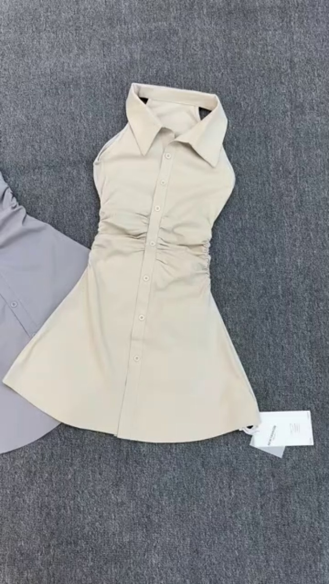 13.8纯欲风短裙女辣妹挂脖连衣裙露肩衬衫裙夏季小个子收腰polo领裙子,s-l...