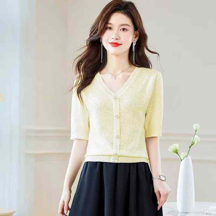 夏季新款女装法式V领小清新针织开衫,独立包装,均码面料柔软舒适透气,111...