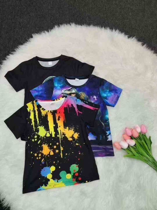 全清3.8元,夏季外贸跨境款圆领3D男女童印花短袖,后领包边,独立包装,码...