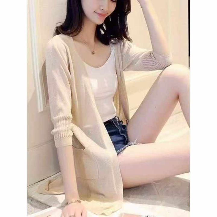 夏季新款时尚防晒薄款冰丝网红韩版外套空调针织开衫,独立包装,均码面料柔...