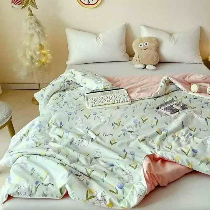 主播拿起一款床品四件套,展示面料的柔软度,对着镜头展示上面的精致刺绣。